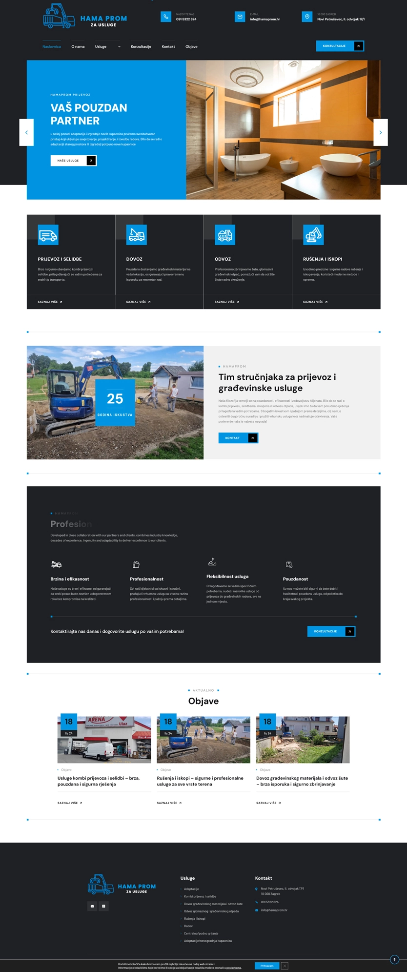Tvrtka se temelji na pouzdanosti, efikasnosti i zadovoljstvu klijenata. Bilo da se radi o kombi prijevozu, selidbama, iskopima ili odvozu otpada, uvijek smo tu da vam ponudimo rješenja prilagođena vašim potrebama.
