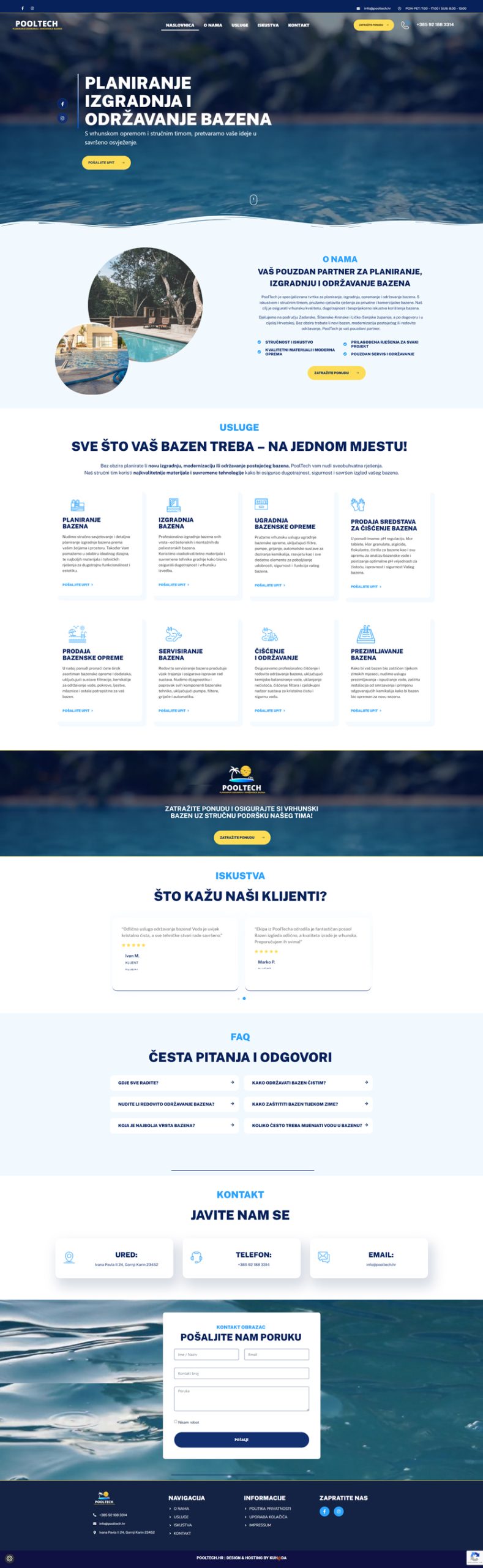 Specijalizirana tvrtka za planiranje, izgradnju, opremanje i održavanje bazena. S iskustvom i stručnim timom, pruža cjelovita rješenja za privatne i komercijalne bazene.